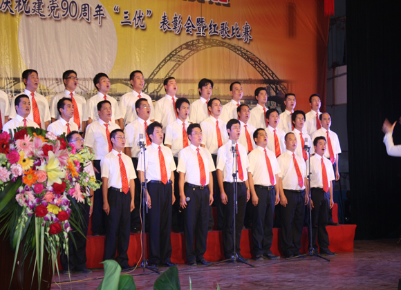 廣西新發(fā)展交通集團(tuán)公司機(jī)關(guān)一曲激情飛揚(yáng)的合唱《我的祖國(guó)》拉開(kāi)了紅歌比賽序幕。當(dāng)晚,來(lái)自集團(tuán)公司機(jī)關(guān)及其各直屬單位的共10個(gè)參賽隊(duì)用嘹亮的歌聲激情演唱,一曲曲紅歌振奮人心、鼓舞士氣、催人奮進(jìn)。經(jīng)過(guò)激烈角逐,廣西路橋建設(shè)有限公司以一曲四聲部深情合唱《太陽(yáng)最紅,毛主席最親》勇奪紅歌比賽一等獎(jiǎng),廣西公路橋梁工程總公司放歌的《江山》和廣西航務(wù)工程處的大合唱《保衛(wèi)黃河》同獲二等獎(jiǎng),來(lái)自廣西交通科學(xué)研究院的《年輕的朋友來(lái)相會(huì)》、廣西交通物資總公司的《我和我的祖國(guó)》及廣西中路交通建設(shè)總公司的《祖國(guó)不會(huì)忘記我》榮獲三等獎(jiǎng)。