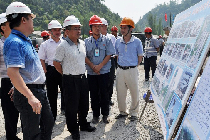 近日,廣西交通投資集團(tuán)總經(jīng)理劉可(前排左二)深入我公司參建的六寨至河池、河池至都安高速公路項(xiàng)目視察。