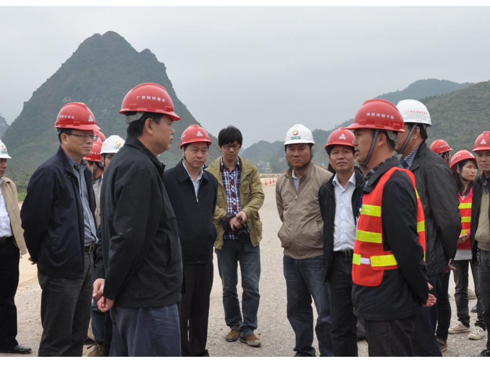 圖3:自治區(qū)交通運輸廳副廳長梁毅(前右一)在欽崇高速公路項目檢查調(diào)研