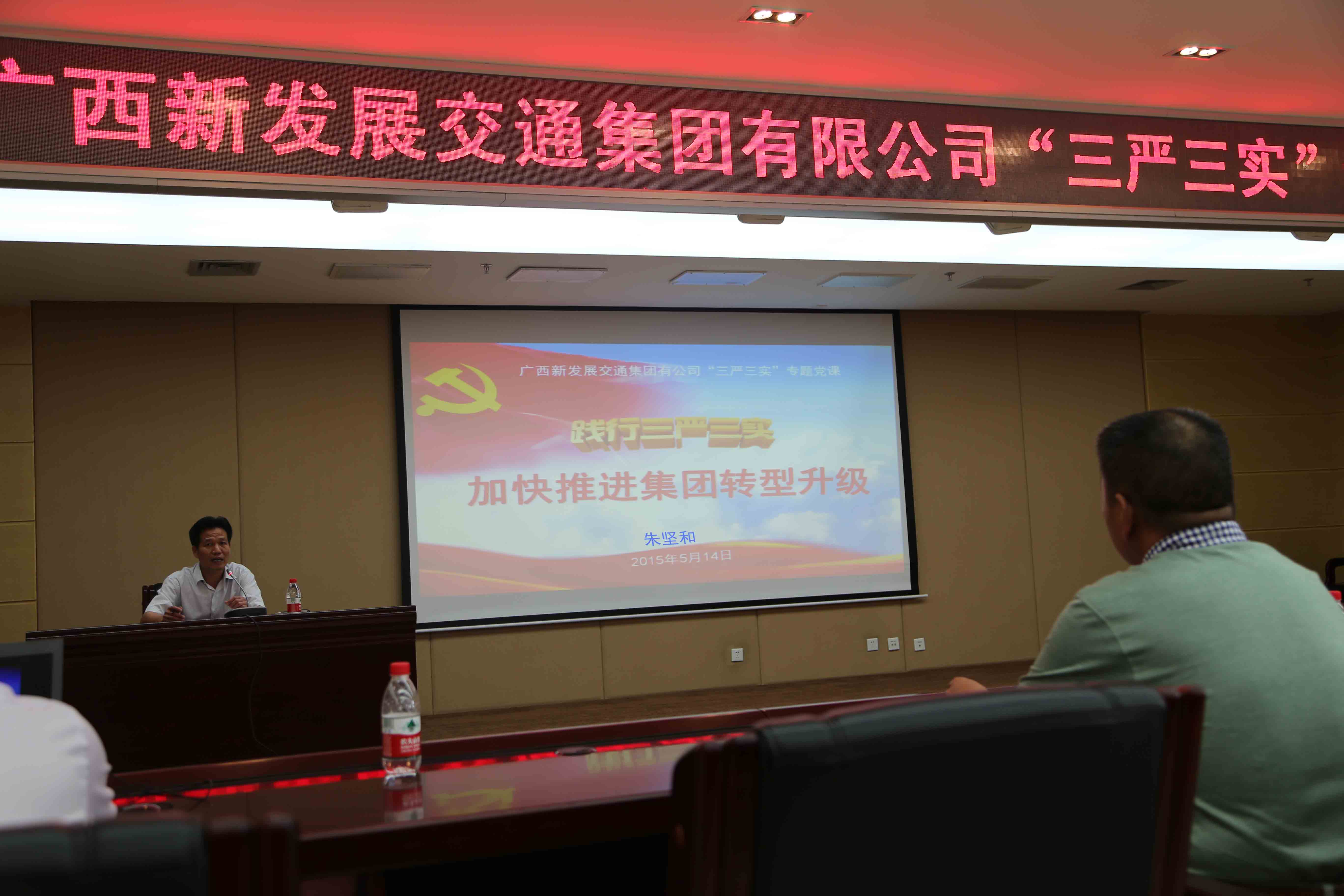 5月14日下午,集團(tuán)公司黨委書(shū)記、董事長(zhǎng)朱堅(jiān)和以《踐行“三嚴(yán)三實(shí)” 加快推進(jìn)集團(tuán)轉(zhuǎn)型升級(jí)》為題,帶頭為集團(tuán)及直屬各企業(yè)領(lǐng)導(dǎo)班子講專題黨課。集團(tuán)公司黨委副書(shū)記、紀(jì)委書(shū)記張友坐主持黨課。以此次黨課為標(biāo)志,集團(tuán)公司“三嚴(yán)三實(shí)”專題教育正式啟動(dòng)。