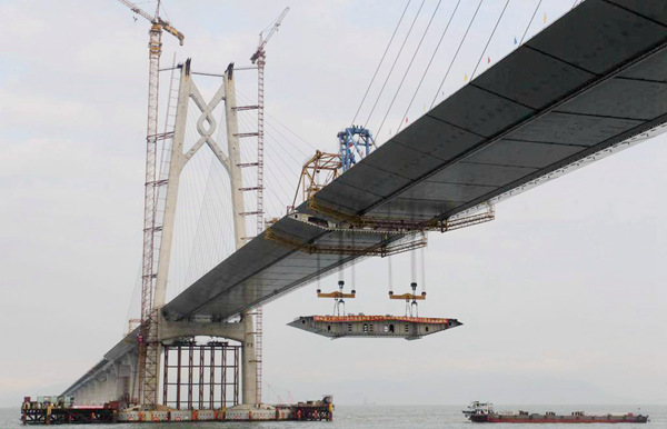港珠澳大橋是全球最具挑戰(zhàn)的跨海項目,大橋全長35.6公里,跨越伶仃洋,東接香港,西接珠海和澳門,是世界上最長的跨海大橋工程,也是“一國兩制”框架下粵港澳三地首次合作建設的大型跨海交通工程。大橋的建設對密切珠江西岸地區(qū)與香港地區(qū)的經(jīng)濟社會聯(lián)系,促進兩岸經(jīng)濟社會協(xié)調(diào)發(fā)展,保持港澳地區(qū)的持續(xù)繁榮穩(wěn)定,具有劃時代的意義。