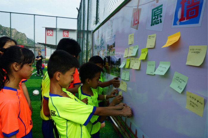 在活動(dòng)現(xiàn)場,志愿者們還為孩子們?cè)O(shè)置了“心愿墻”,孩子們?cè)诶蠋煹闹敢聦懗隽寺癫卦谛睦镆丫玫男脑?mdash;“我想要一件皇馬隊(duì)球衣”、“我想要一本日記本”……一個(gè)個(gè)質(zhì)樸的心愿都將在志愿者的幫助下得以實(shí)現(xiàn)。